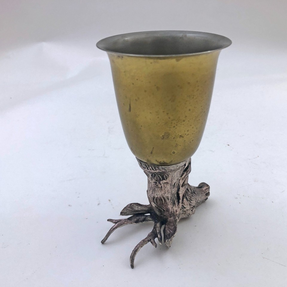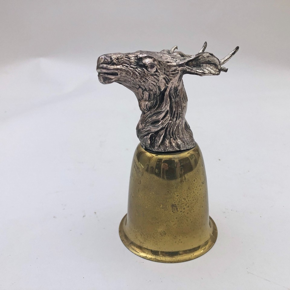 - Deer Silver Tone Stag Head Stirrup Goblet Cup Brass 6 Inches Tall Vintage