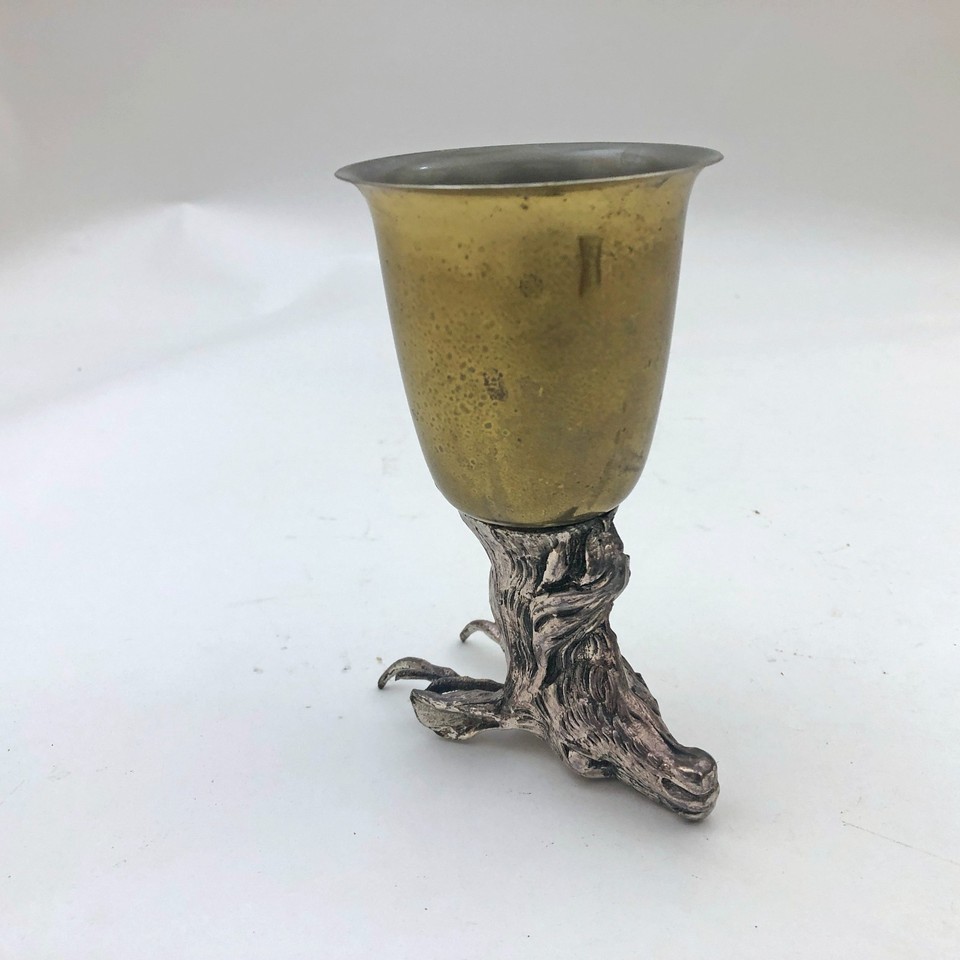 Deer Silver Tone Stag Head Stirrup Goblet Cup Brass 6 Inches Tall Vintage