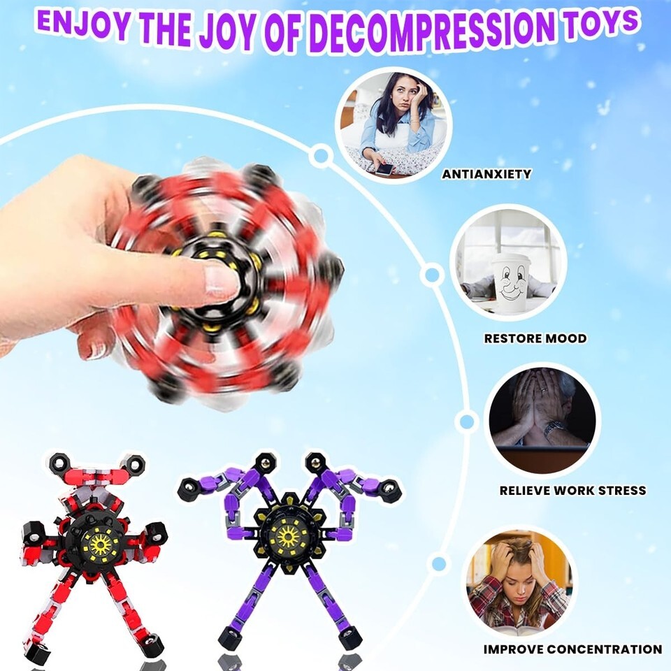 Multi-function: Hot deformation fingertip decompression mechanical gyroscope variable DIY chain creative rotary decompression finger gyro, can also be used as a mobile phone stand, decoration, play, watch and so on.