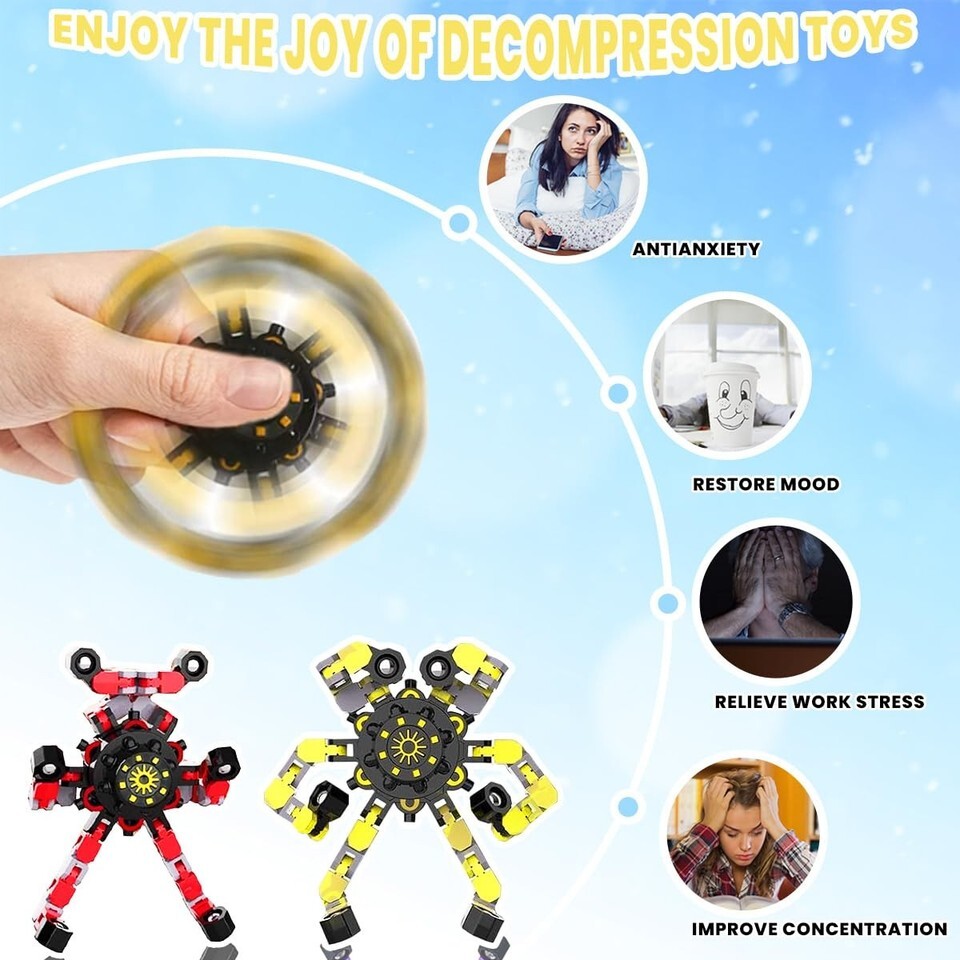 Multi-function: Hot deformation fingertip decompression mechanical gyroscope variable DIY chain creative rotary decompression finger gyro, can also be used as a mobile phone stand, decoration, play, watch and so on.