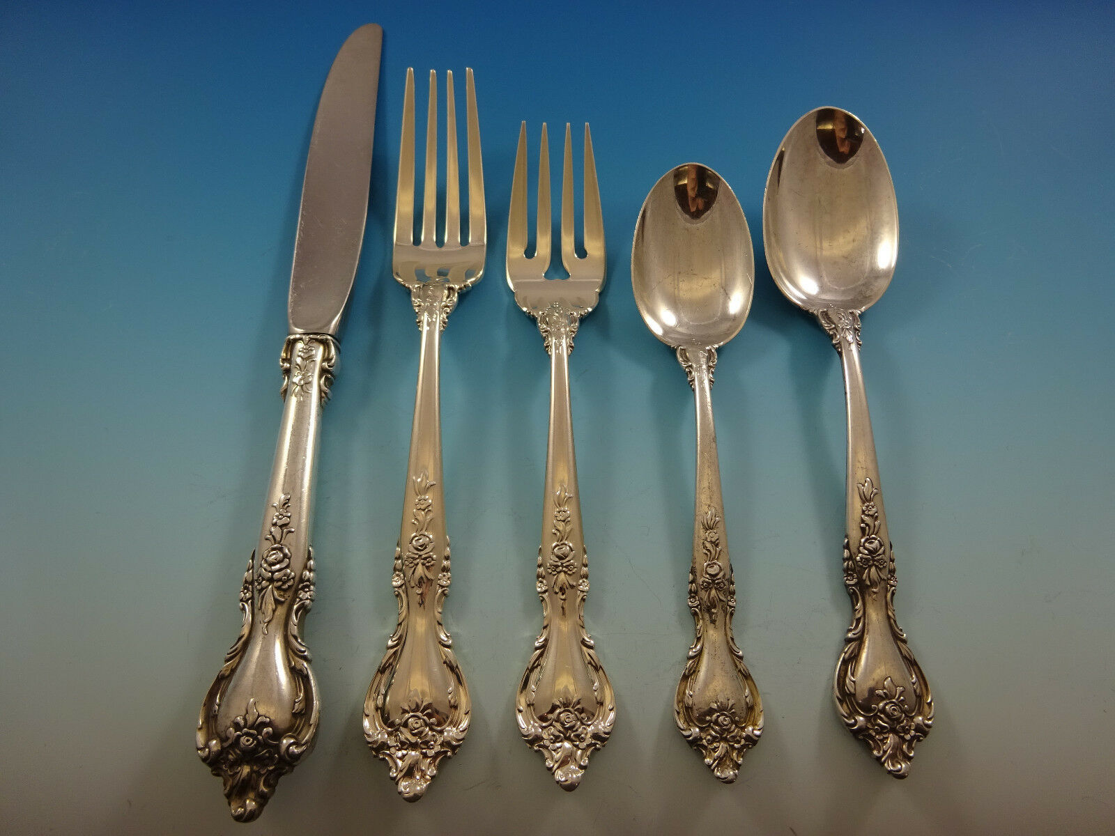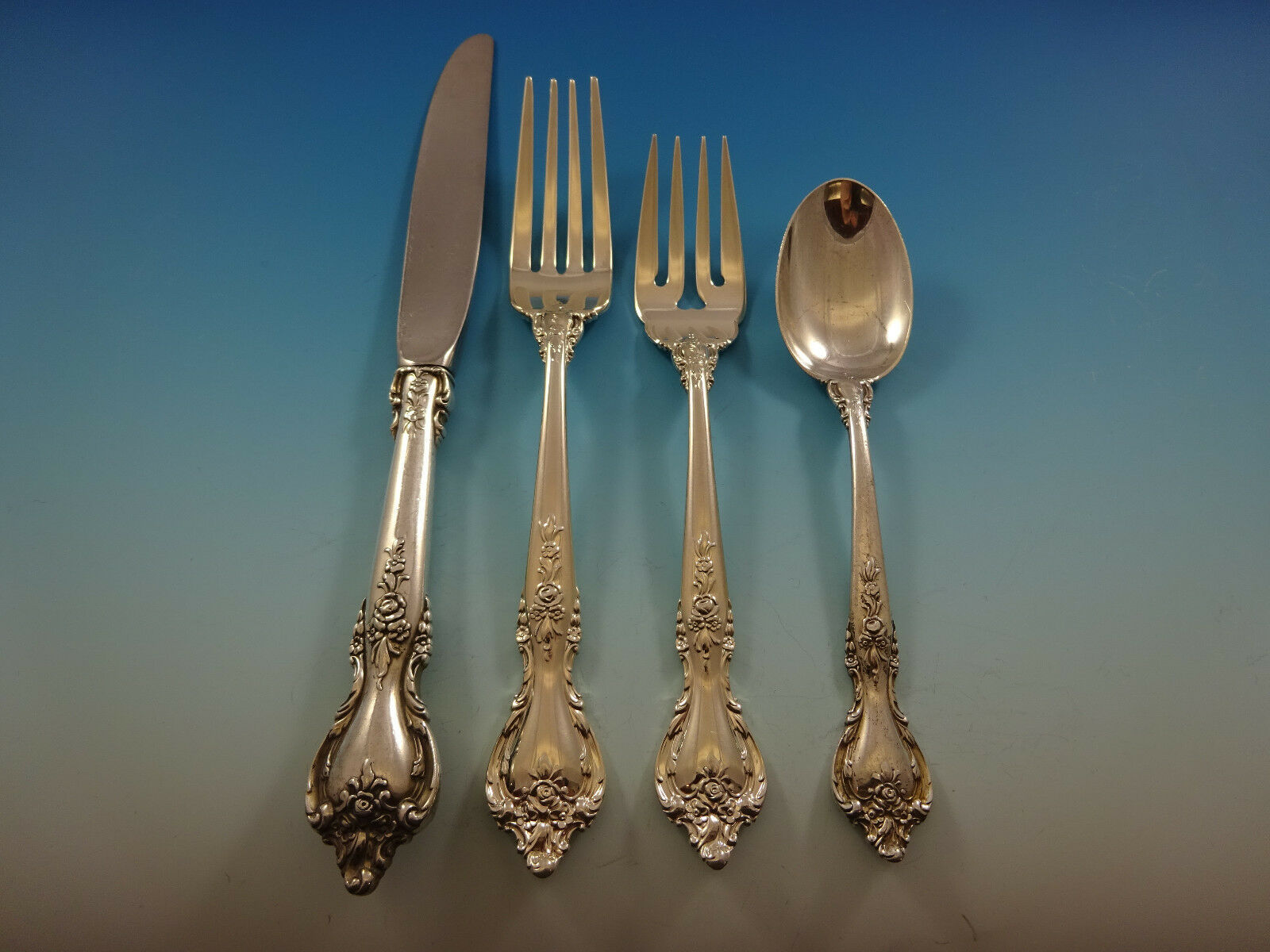 COMPLETE FLATWARE SETHOSTESS HELPERSHOLLOWWARE / TEA SETSMUSEUM QUALITY/FIGURAL SILVERFINE ESTATE VINTAGE JEWELRYMID-CENTURY MODERNSILVER FLATWARE SILVERWAREBuccellatiChristofleGeorg JensenNew Georg Jensen HollowwareNew Georg Jensen JewelryGorhamInternationalLuntMichael Aram - NewReed BartonTiffany Co.TowleWallaceWhitingPLACE SETTINGS