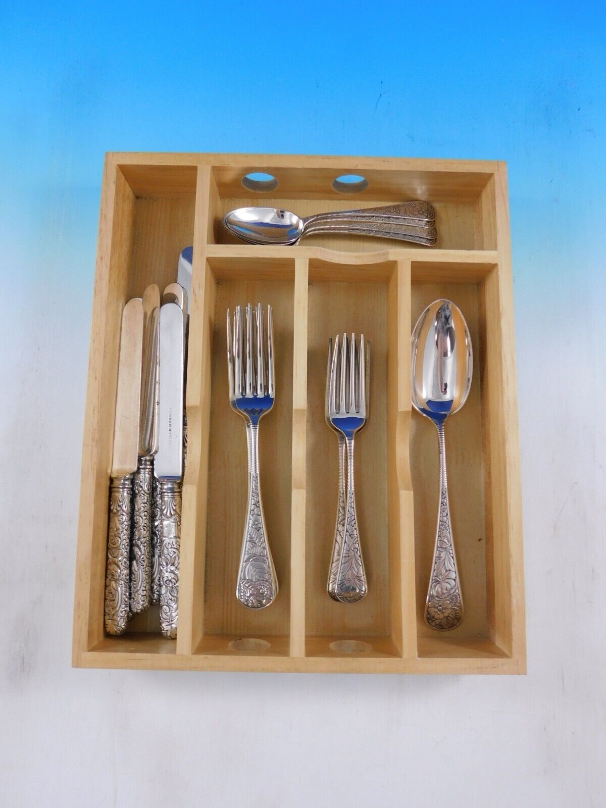 - Delhi by Gorham Sterling Silver Flatware Set Service 17 pieces Rare c1880