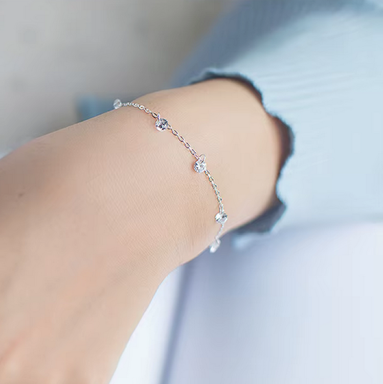- Delicate 925 Sterling Silver Dazzling A+ Zirconia Chain Bracelet (6-7.5")