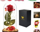 Delicate Red Silk Rose in Illuminated Glass Dome - Anniversary Birthday Gift
