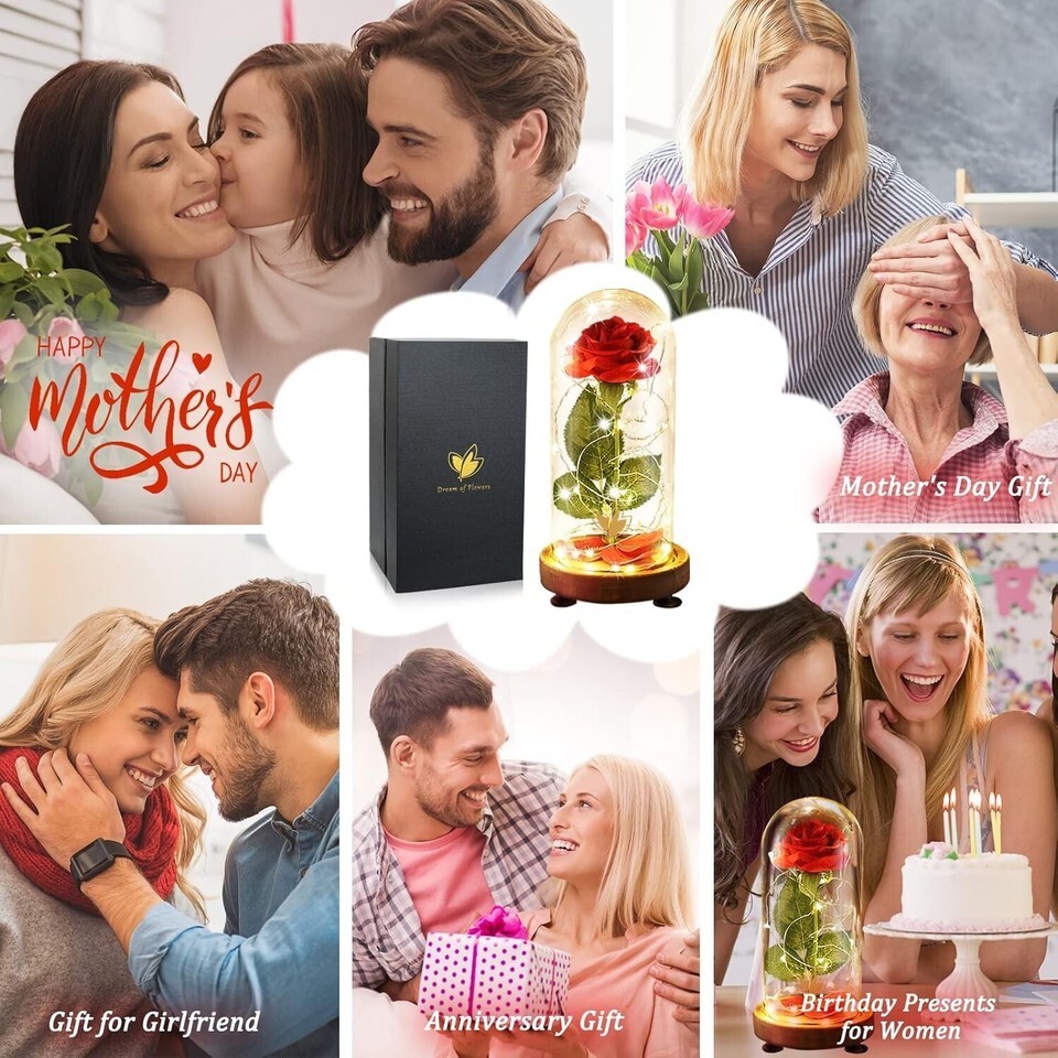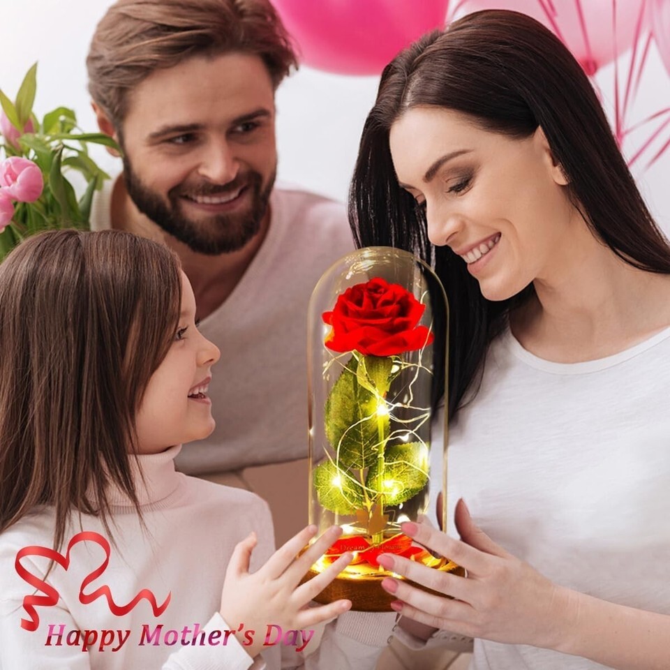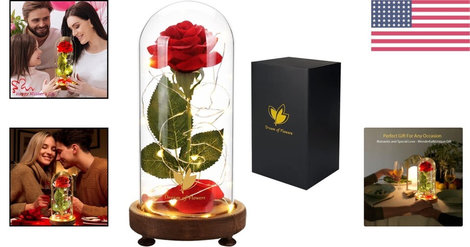 Illuminated Glass Dome: The enchanting LED lights are powered by USB, enhancing the visual allure and protecting the everlasting rose inside.