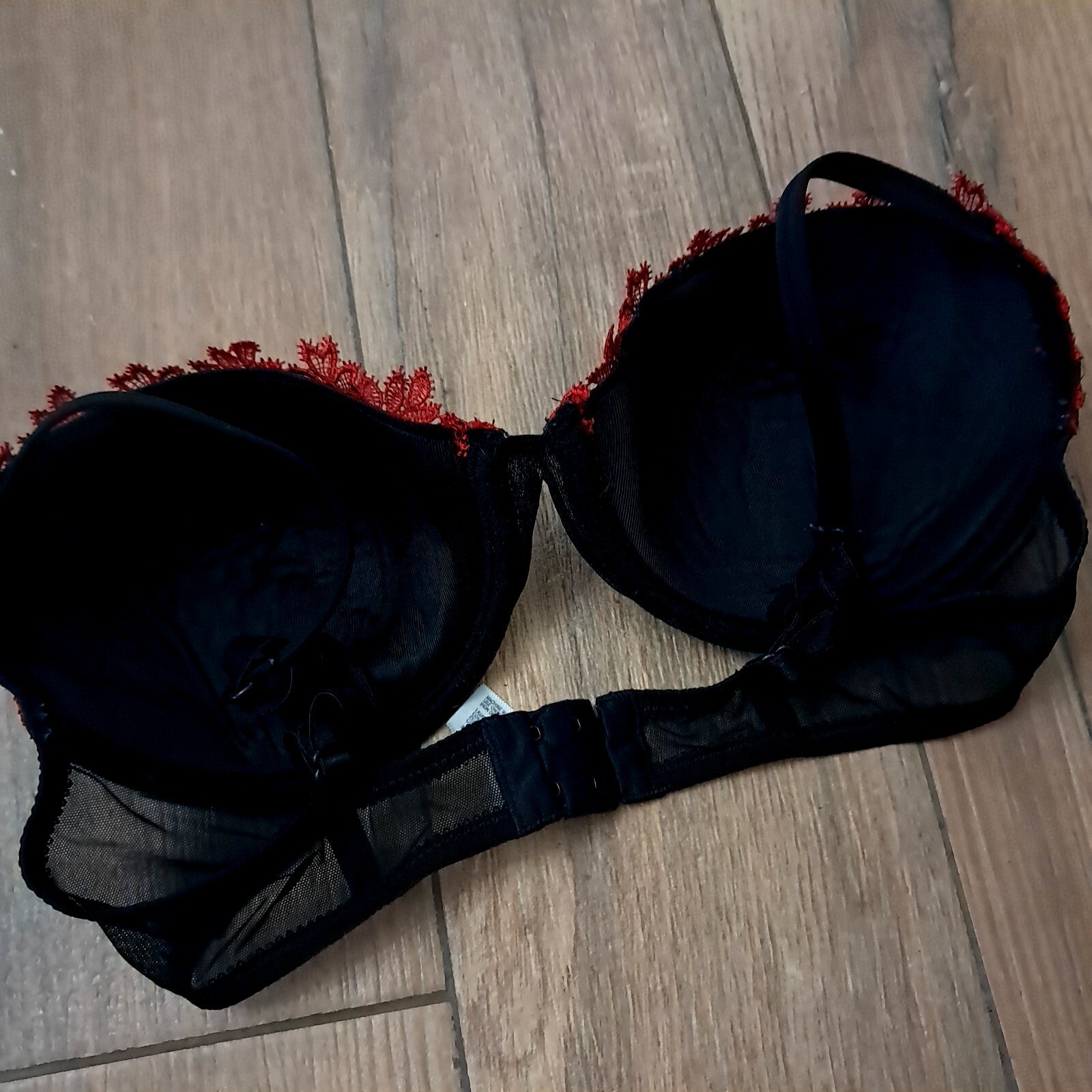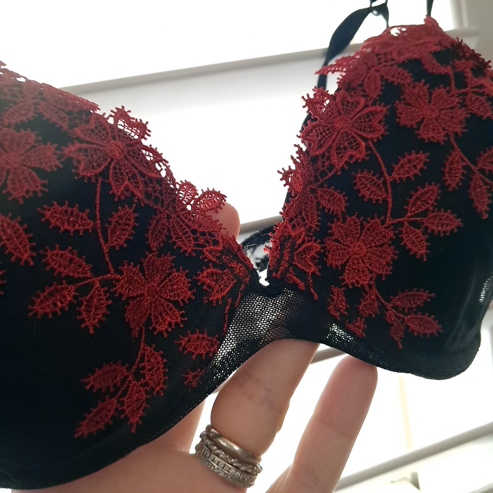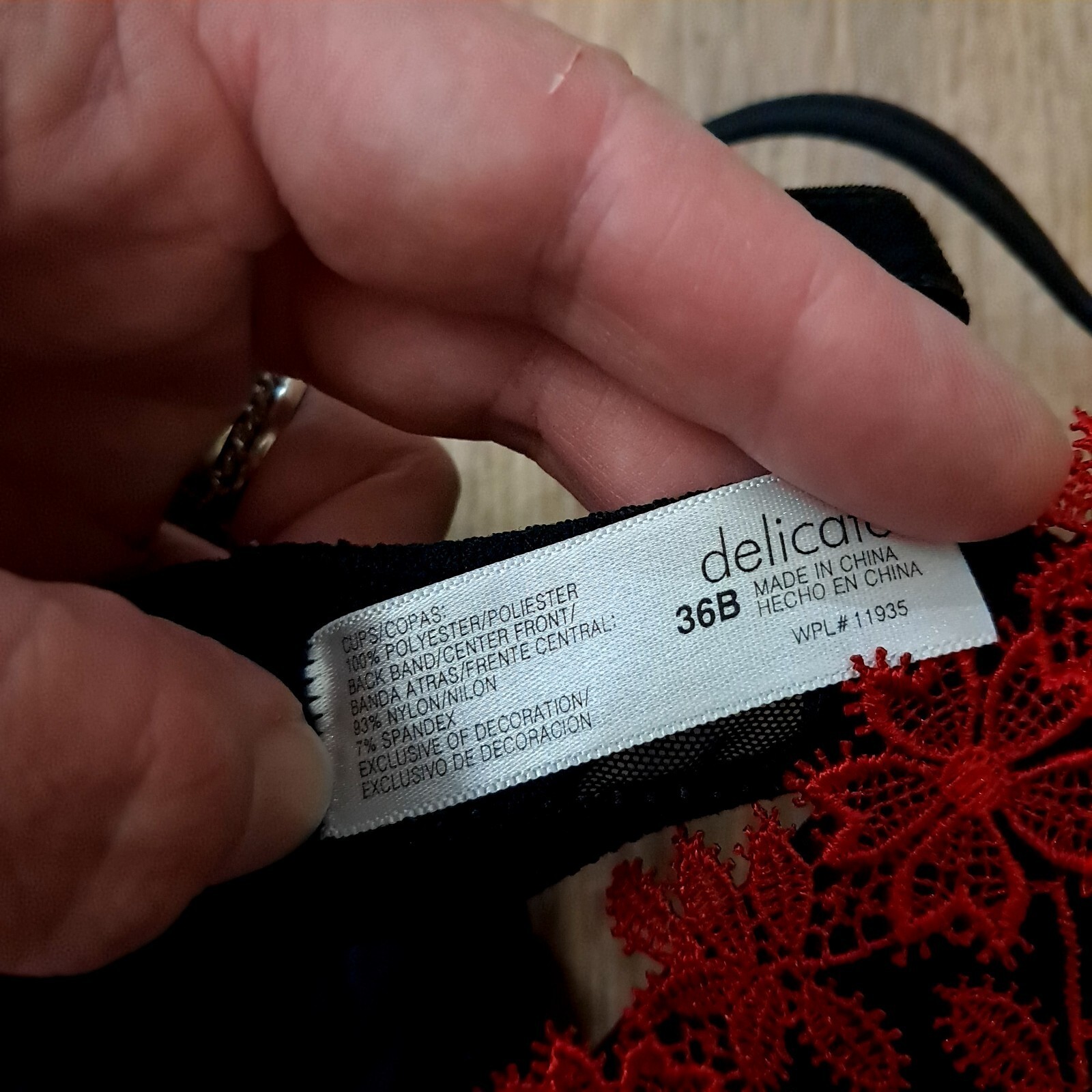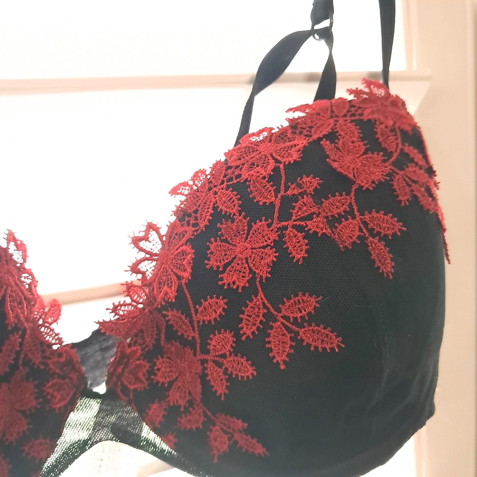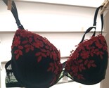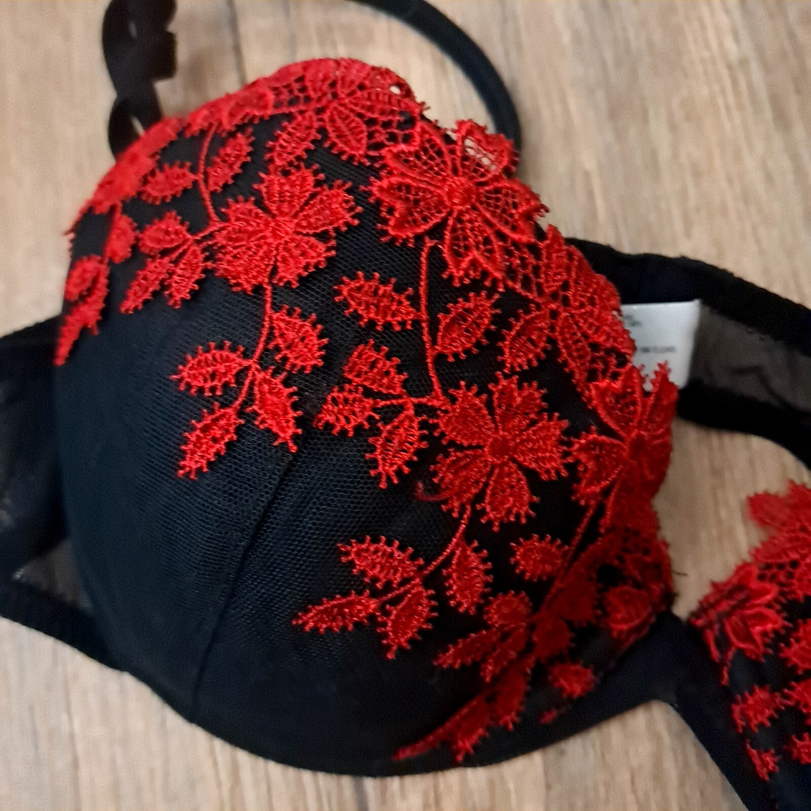 - Delicates bra 38B heavily embroidered black red lace underwire flowers floral