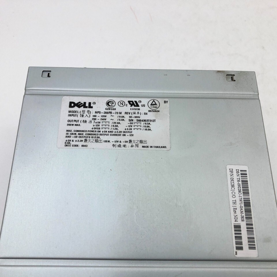 - Dell 200W Power Supply NPS-200PB-73M DP/N 09228C Vintage