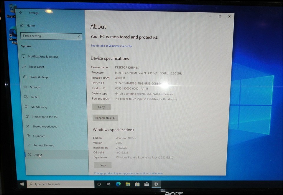 WINDOWS 10 PRO, 80GB HDD, 4GB RAM