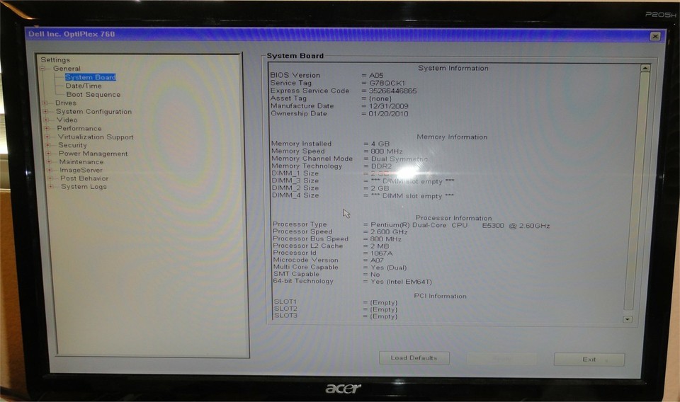 - Dell Optiplex 760, Pentium E5300 2.60GHz, 4GB RAM, NO HDD, NO OS, #148