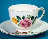 - Delphine Cup & Saucer Pink & Yellow Roses Bone China England