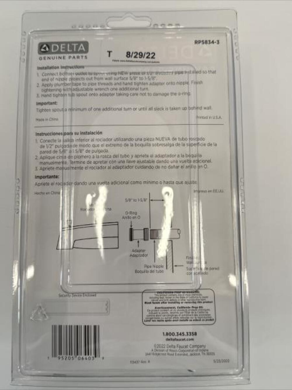 - Delta RP5834 Diverter Tub Spout Chrome also fits pre2004 Peerless & Masco 32192