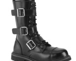 DEMONIA RIOT-12BK Men's Black Leather Punk Combat Steel Toe Calf High Boots