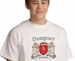 Product description: Dempsey Irish Coat of Arms Tee Shirt in White. Every Irish family has a story to tell, probably hundreds of stories. Your Irish coat of arms is a visual record of your family's oldest, most significant stories. Here, they're told in bright, permanent artwork on these fine-quality, 100% cotton Gildan tee shirts. Over 25 years of heraldry research and over 1000 available Irish family coat of arms.