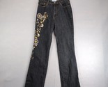 Denim 24/7 Gold Embellished Jeans Women's 12T 27x32" Black Stretch Straight Wide