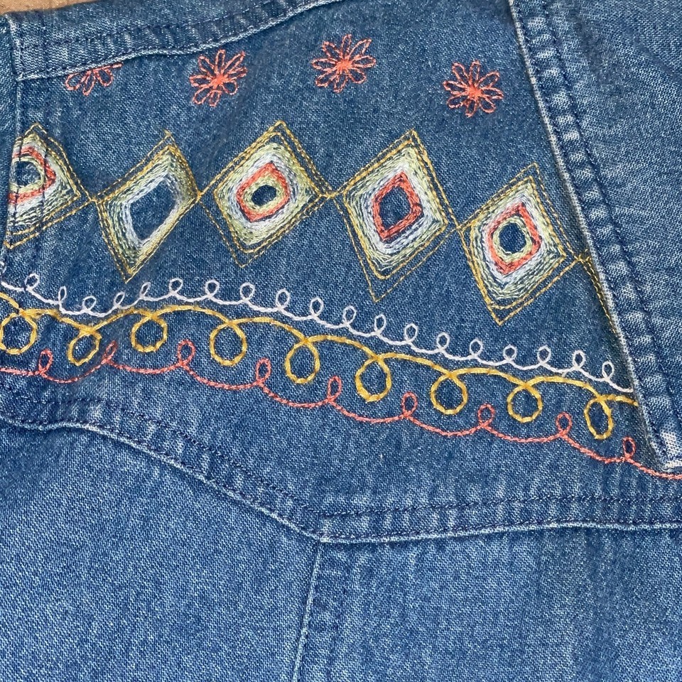 - Denim & Co. VTG Modest Denim Skirt Jacket Outfit Set 1X Grannycore Embroidered
