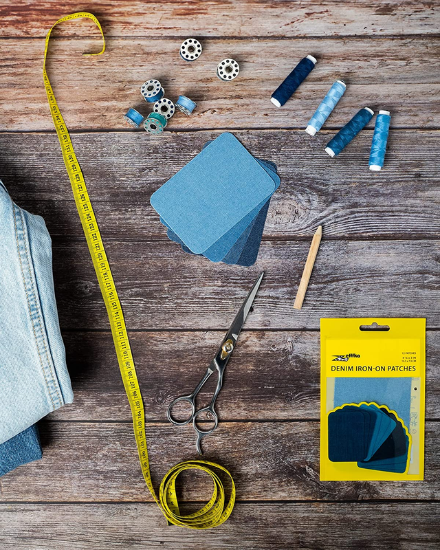 ??????? ????????: 12 iron-on denim patches, size 3" by 4-1/4" (7.5 cm x 10.5 cm). Ideal size will help to conceal the shortcomings of both small and large holes and enough to create your own design. Four different shades of blue will perfectly match your different denim clothes. Front side of the patches is 100% cotton, rear side is covered with the strongest hot-melt adhesive film. Patches made in EU using high quality materials.