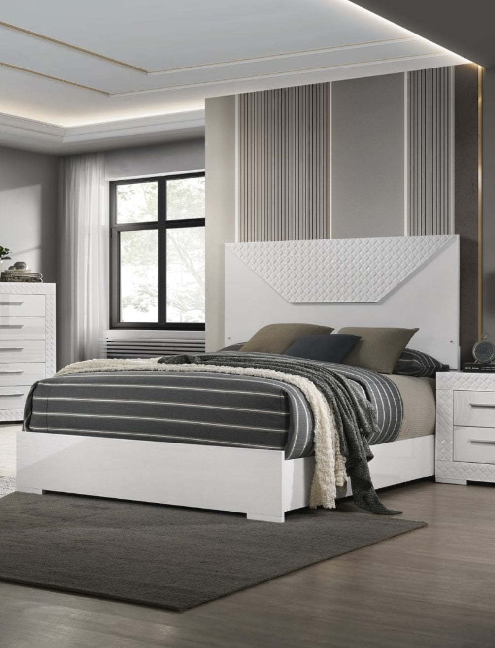 Enhance the sophistication of your bedroom decor with our Queen 4Piece Bedroom Set, reaching new levels of elegance.