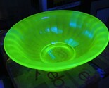 - Depression Glass Bowl 9.75" green iridescent Vaseline uranium glass Antique
