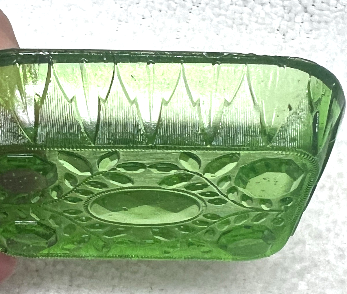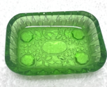 - Depression Green Glass Open Salt Dip Leaves and Deco Design 3.5 x 1 3/4 x 1/2