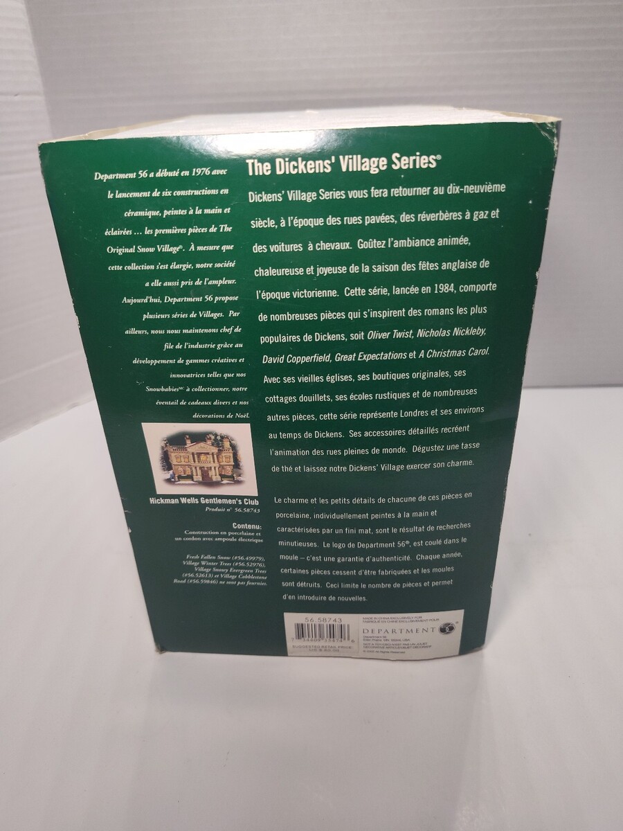 - DEPT 56 HICKMAN WELLS GENTLEMAN'S CLUB 58743 DICKENS SNOW VILLAGE NEW IN BOX