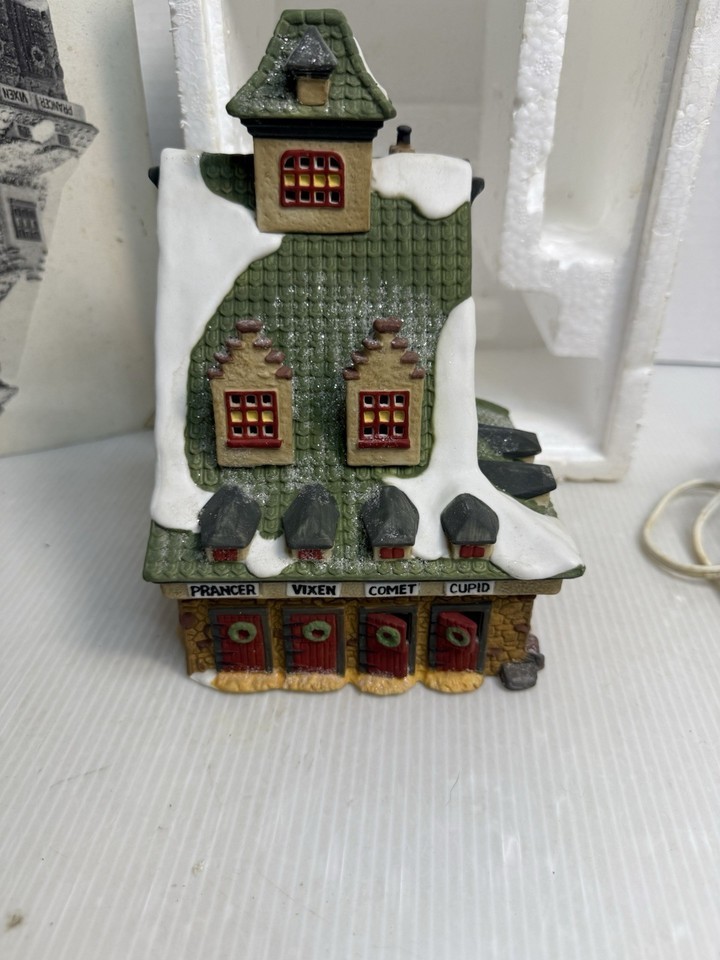 The Dept 56 North Pole Series "Reindeer Barn" is a Christmas Village