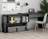 Rotatable Feature: The desk has a unique rotatable design, allowing for multi-directional use. You can easily adjust the angle to meet your needs or preferences, making it great for computer workstations. Engineered Wood Material: Made from high-quality engineered wood, this desk combines durability with a modern touch. Its smooth matte finish not only looks great but also withstands daily use. Space-Saving Corner Design: Designed to fit snugly in corners, it maximizes the usable space in your room without hogging the floor space, making it perfect for tight spots. Ample Storage: With two shelf spaces right below the surface, it's ideal for storing office supplies or decorative items while keeping your workspace tidy and stylish. Modern Aesthetic: The simple yet smart design fits in well with any decor style, adding a touch of elegance to your place while ensuring a functional workspace. Color: Grey Shape: Rectangular Material: Engineered wood Finish: Matte Indoor/Outdoor: Indoor Only Cover Included: No Room: Office Maximum Number of People: 1 Dimensions: 78.7 x 78.7 x 29.9 in (W x L x H) Min-Max Dimensions: 200/120 Surface Height: 0.8 in Weight: 67.24 lbs Delivery Contains: Desk components for assembly Assembly Required: Yes Recommended Number of People for Assembly: 1