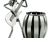 Product description this decorative pencil cup holder is the perfect choice for you. Put this pen caddy on your office desk, your kitchen counter or your dresser. Keep pens and pencils within reach and fun, functional style close at hand. Key features cylindrical metal container is the perfect size to hold an assortment of pens, pencils, highlighters and markers. Best item decorate your desk and room. Increase your confidence and interesting to writing. Made of metal and due to hand-crafting, each piece is unique pen holder decorated with a metal man designed to look like he's playing a guitar dimensions approximate: 4.5" L x 2.5" W x 5.5" H.