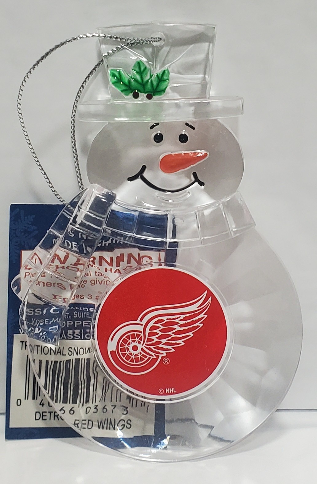 Officially Licensed Detroit Red Wings Acrylic Snowman Ornament.