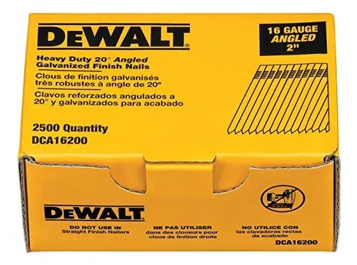 - DEWALT HEAVY DUTY 20 DEGREE ANGLED FINISH NAILS 2500 DCA16200 BRAND NEW