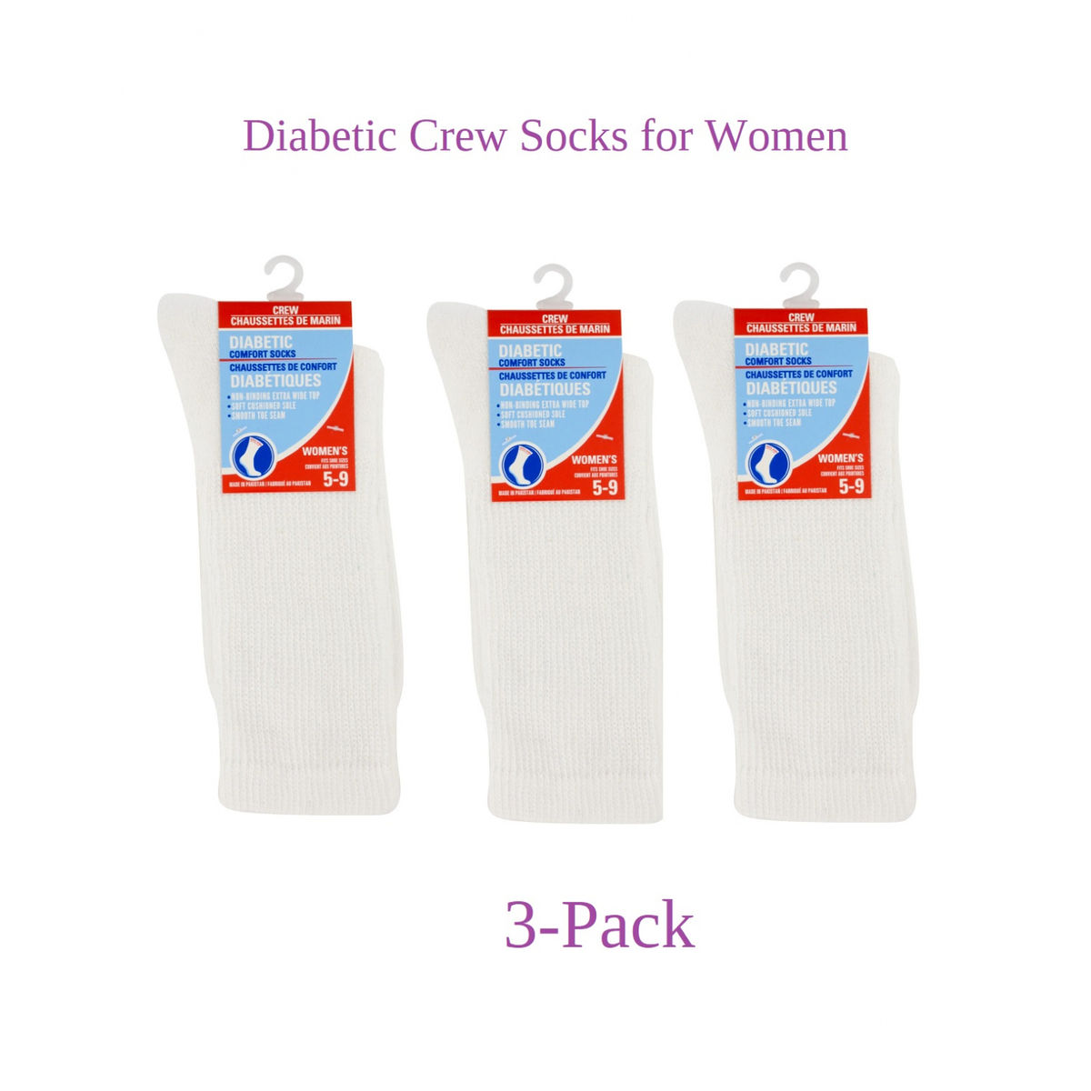 - Diabetic Socks for Women (3-Pack) White Comfort Crew Socks for Diabetics size