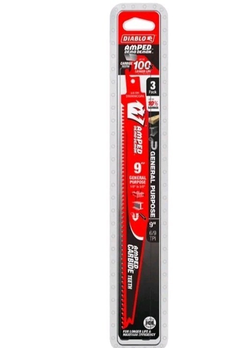 - DIABLO 9” 6/9 TPI AMPED Demo Demon Recip’ Saw Blades, General Purpose (2 PACK)