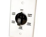 7112 Features: -Cooler wall switch. -Include: mounting screws and wiring diagram. -2 Speed single gang. Generic Specifications: -6 Position wall switch. Generic Dimensions: -1.25" H x 4.75" W x 4.75" D. Dimensions: Overall Height - Top to Bottom: -1.25 Inches. Overall Width - Side to Side: -4.75 Inches. Overall Depth - Front to Back: -4.75 Inches. Overall Product Weight: -0.18 Pounds. 2-Speed, 6-position wall switch. 1 gang plastic plate, screw type. 120 Volt 13.8 Amps up to 3/4 HP 2-Speed 6-position wall switch 1 gang plastic plate, screw type. WARNING: This product can expose you to chemicals including lead which is known to the State of California to cause cancer and birth defects or other repair.