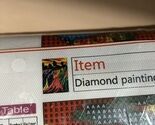 Preowned diamond painting featuring a vivid depiction of African women dancing, dressed in flowing colorful garments against a warm sunset background. The piece showcases beautiful detail and rich tones of red, yellow, green, and blue. Perfect for framing or as a display-ready art craft. Measures approximately 12? x 16?. Please review all photos for details of condition and color vibrancy.