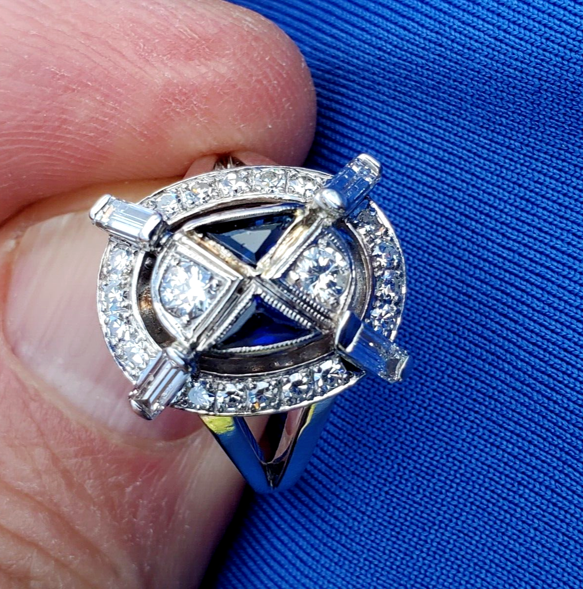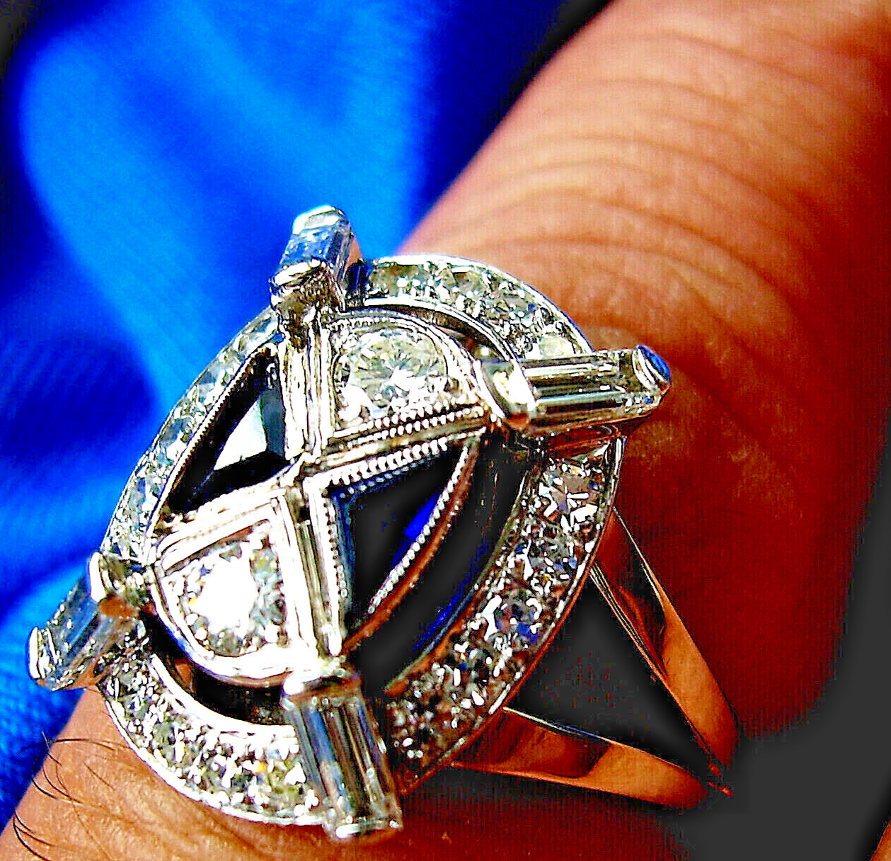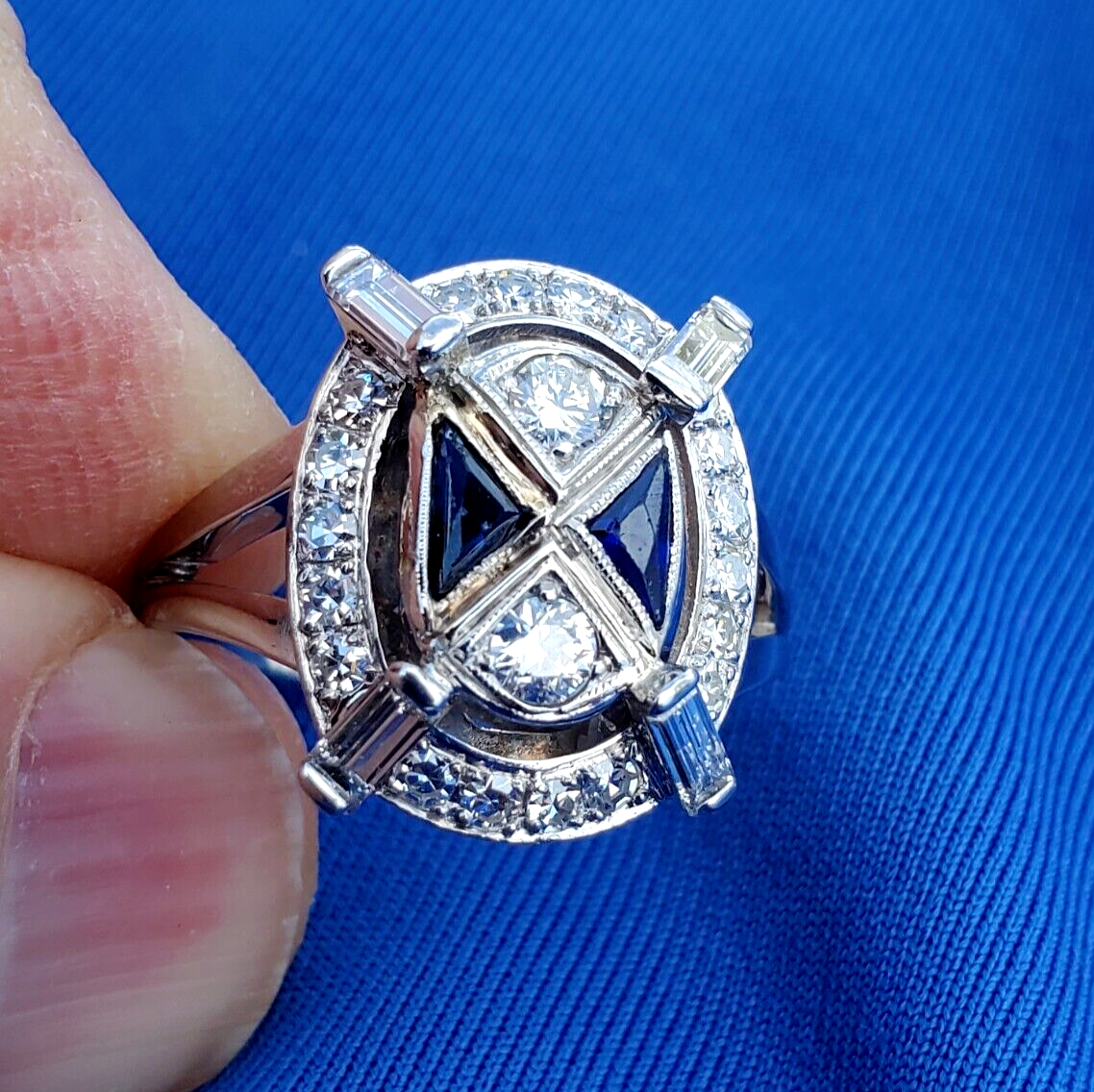 - Diamond Sapphire Deco Gatsby style Engagement Ring Vintage Statement 18k Gold