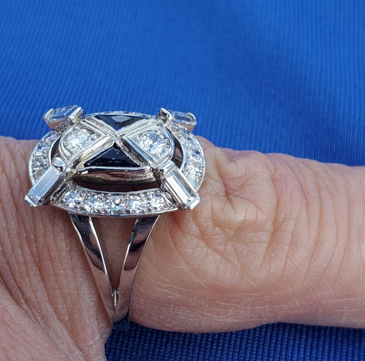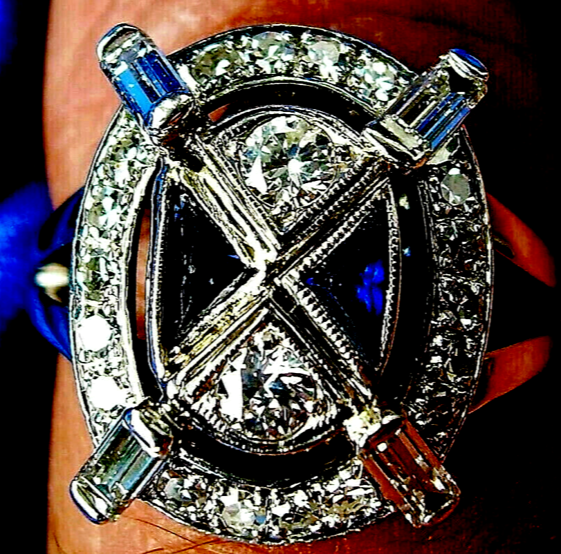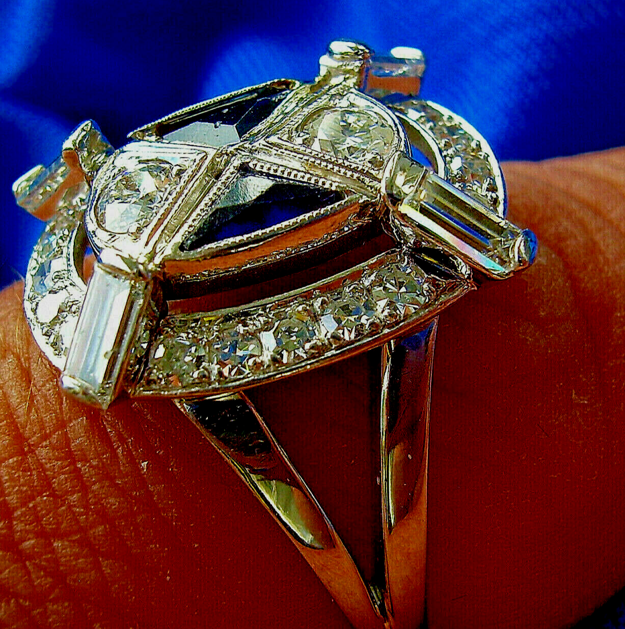 - Diamond Sapphire Deco Gatsby style Engagement Ring Vintage Statement 18k Gold