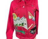 Vintage Diane's Essentials Diane Gilman Oversized Red Denim Jean Jacket Hollywood Star Embellished Sequin Embroidered Rhinestones