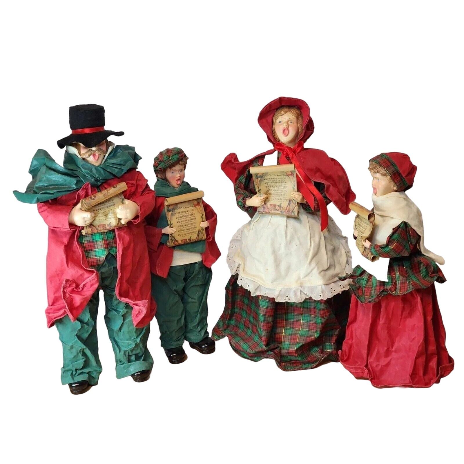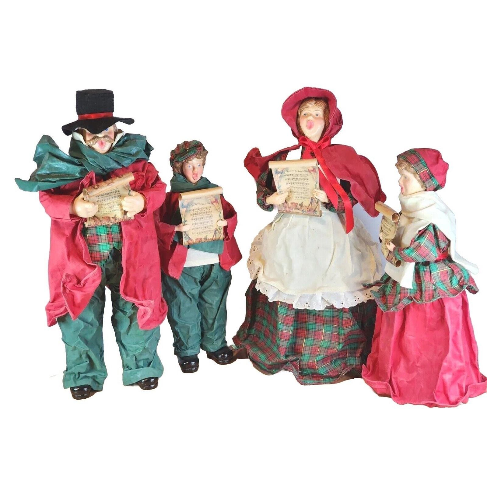 Dicken's Family Carolers HANDMADE FABRIC MACHE Christmas VTG 1990 Original BOX. EXCELLENT CONDITION.