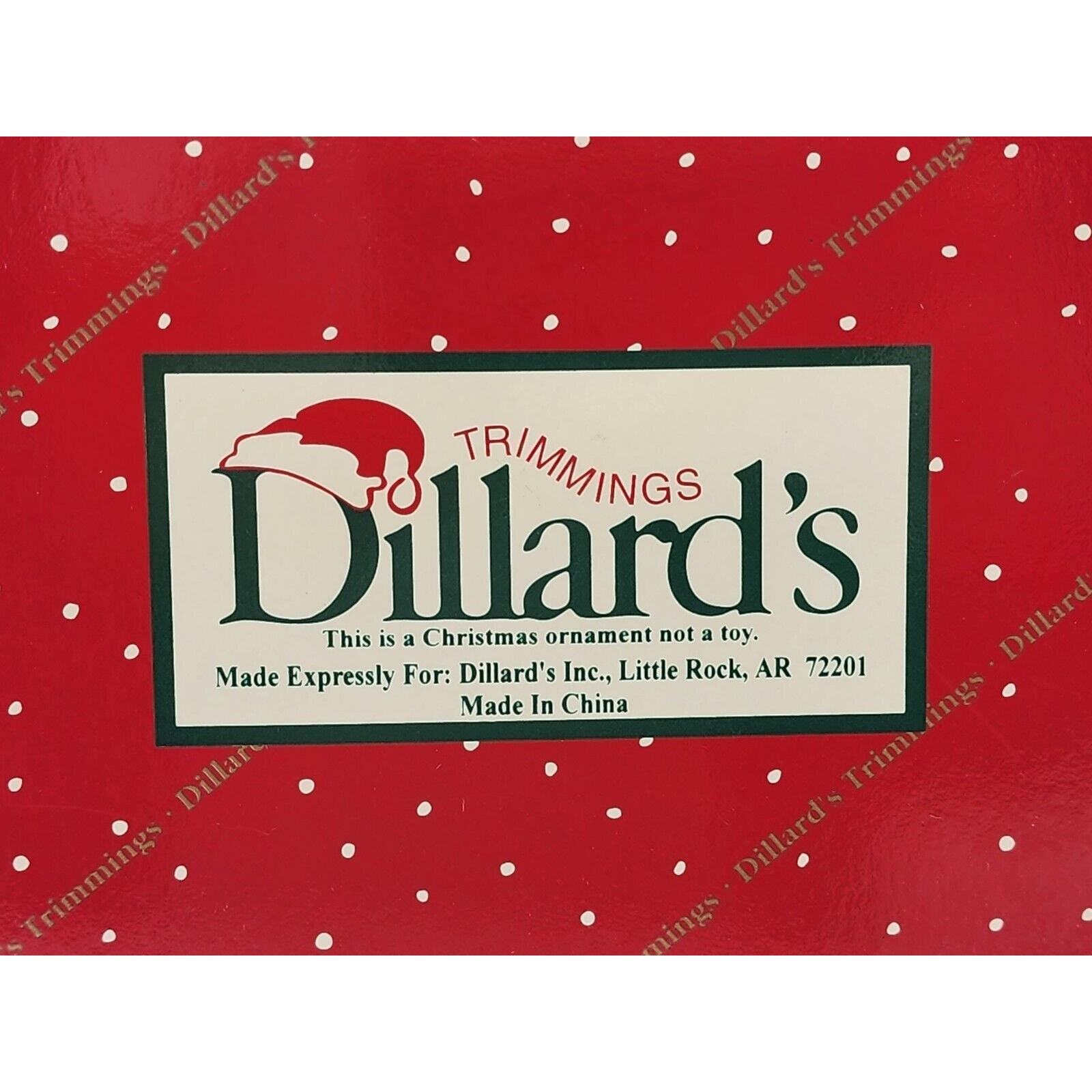 This Dillard's Trimmings Animated Santa With Presents Teddy Bear is a festive addition to any holiday collection. The large, 15-inch figure depicts Santa Claus with a teddy bear and presents, all in a multicolor design that's perfect for Christmas. The vintage item is in its original box, making it a great gift or collector's item for those who appreciate the holiday spirit. The box includes a Santa Claus ornament and is perfect for those who enjoy decorating their homes for the holidays.