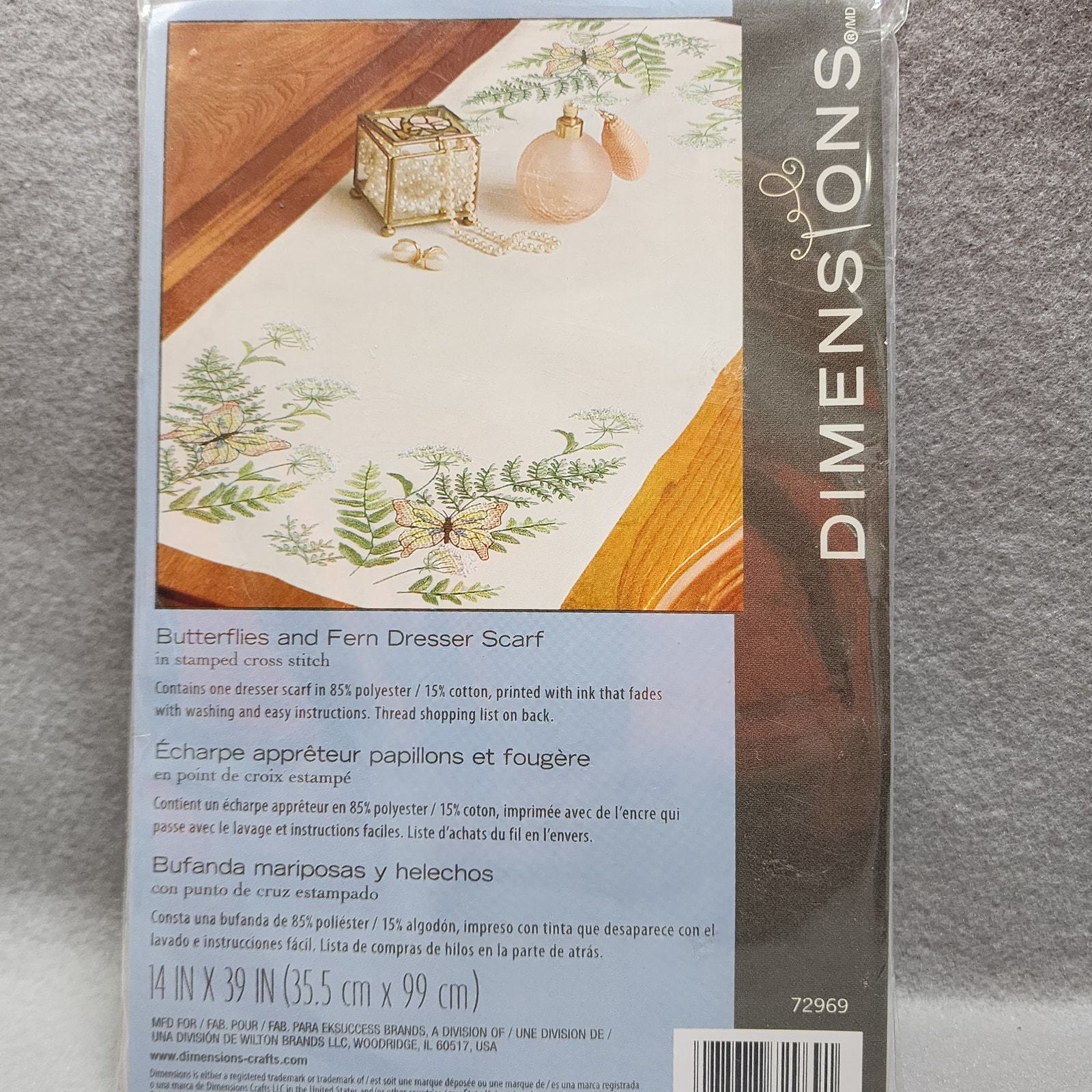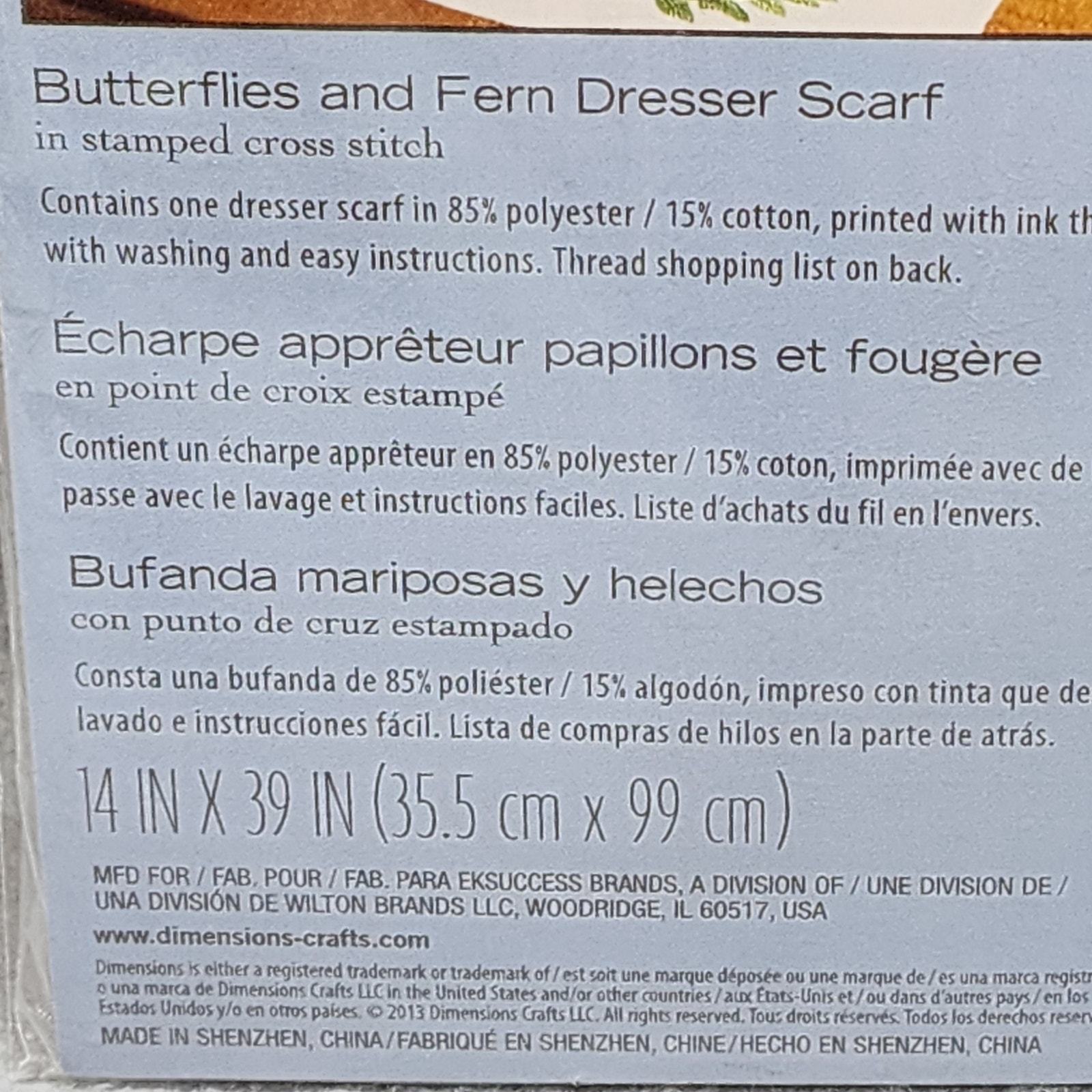 - Dimensions Butterflies and Fern Dresser Scarf CrossStitch Embroidery Pattern NIP