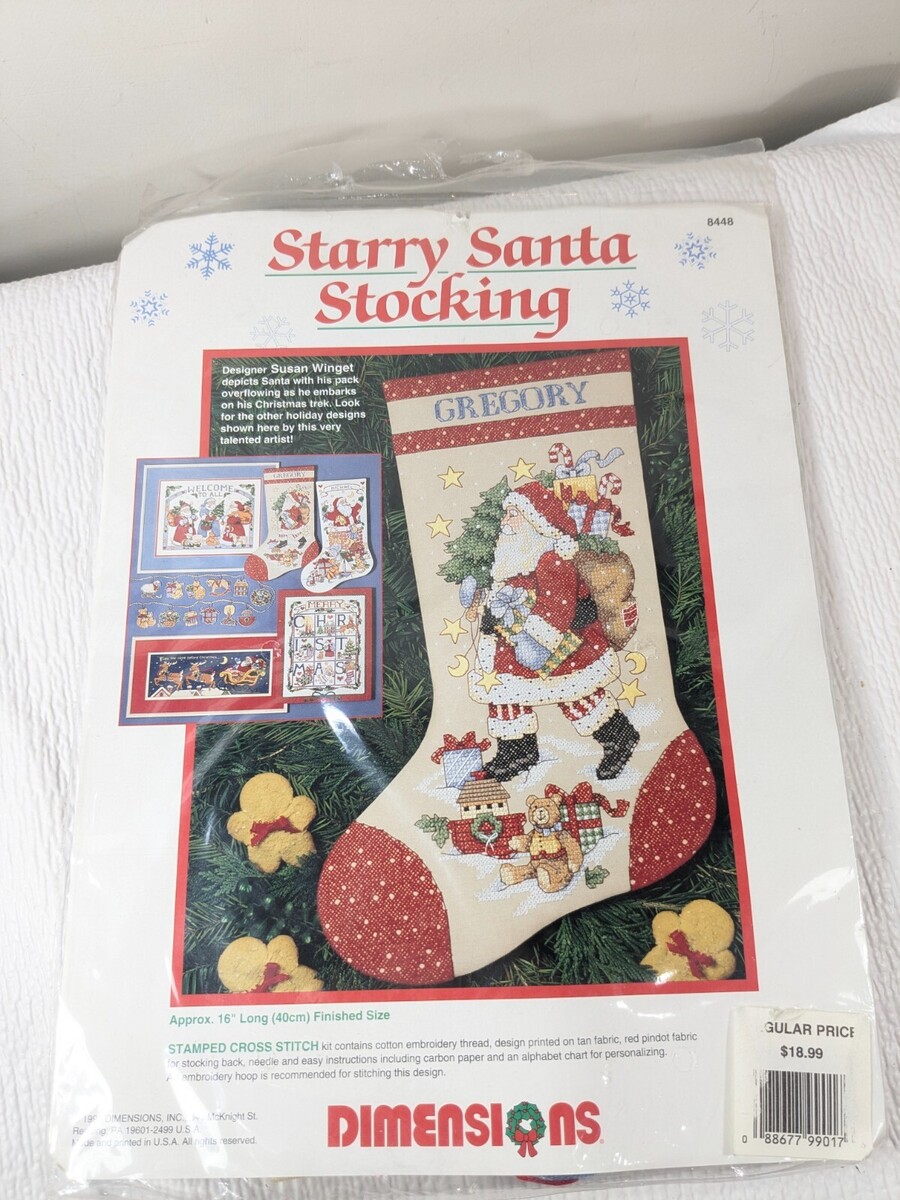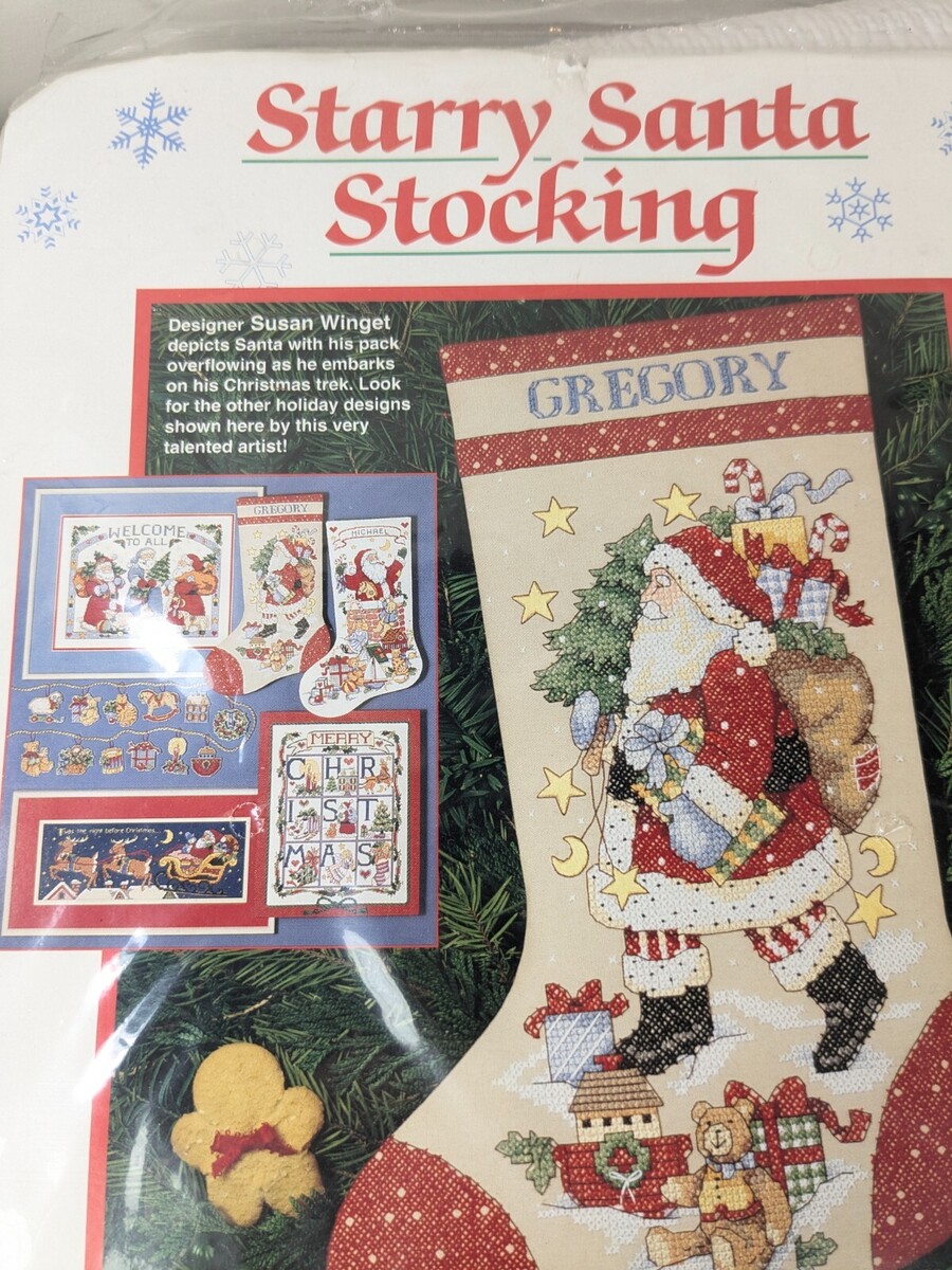 - Dimensions Christmas Stocking Kit Starry Santa Cross Stitch #8448 Susan Winget