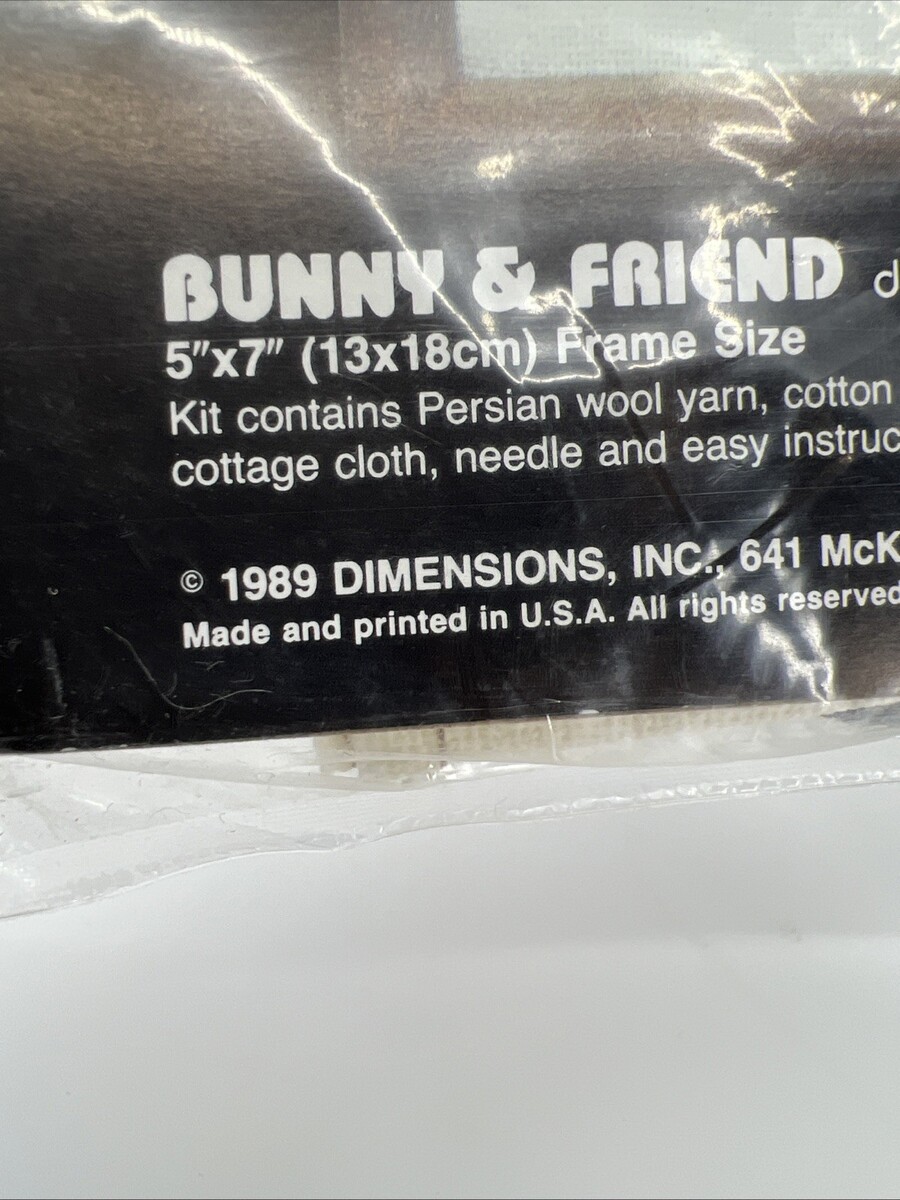 The Dimensions Crewel Kit Bunny Friend Hummingbird is a vintage hand embroidery kit from 1989 that features a charming picture of a bunny and hummingbird. Made in the United States, this kit includes wool and other materials for creating a detailed and beautiful crewel embroidery design. Perfect for those who enjoy working on projects that bring their love of animals and insects to life, this kit is a lovely option for anyone looking to add a touch of handmade art to their home.