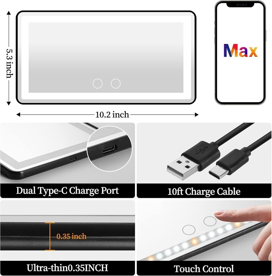 Dimmable Touch LED Car Vanity Mirror - Rechargeable Beauty Accessory for Women ? ? ? ? ? ? ? ? ? ? ? ? ? ? ? ? ? ? Dimmable Touch LED Car Vanity Mirror The Ultimate Rechargeable Beauty Accessory for Women Latest Upgrade: Crafted with a high-definition mirror and high-grade, temperature-resistant materials, ensuring durability even in high outdoor temperatures. Reinforced design to prevent falls, keeping the mirror intact no matter the scenario. Dimmable Bicolor LED Lights: Featuring 12 yellow lights and 48 white lights, this mirror is 40% brighter yet consumes 60% less energy than standard bulbs. Effortlessly switch between three luminous tones: cool white, warm yellow, and a blend of both. Adjust brightness with a long press, with a color temperature range of 2500-6500K to match outdoor sunlight, enhancing your makeup application. Smart Double Touch Control Design: Intuitive touch sensors for seamless on/off functionality. Memory function recalls your preferred brightness and color settings. USB Power Supply and Built-in Lithium Battery: Versatile power options: Charge via lithium battery or USB cable, letting you utilize the mirror anytime, anywhere. With a robust 2000 mAh rechargeable battery, enjoy up to 8 hours of uninterrupted use and a lifespan of at least 10 days with regular usage. Ultra-Thin and Universal Design: Measuring 10.2(L) x 5.3(W) x 0.4(H) inches, this mirror fits effortlessly on most sun visors without occupying unnecessary space. Lightweight with an adjustable lanyard for easy installation and maximum convenience. The Perfect Gift for Any Occasion: Delight the women in your life with this stunning car accessory - an ideal gift for anniversaries, birthdays, Valentine's Day, Mother's Day, Christmas, and more. Show your appreciation with a beauty essential that combines practicality with elegance. Elevate your beauty routine on-the-go with our Dimmable Touch LED Car Vanity Mirror - your new essential travel companion! Shipping Free Fast Shipping - We offer free shipping to most of the USA with a normal delivery time of 3-7 days. However, due to the current situation, additional delivery time (up to 3 weeks) may be required for some items. Alternative Carriers - We may use alternative carriers (e.g. USPS, FedEx, UPS, etc.) to ensure your package arrives safely and on time. Due to the use of multiple carriers, we are unable to provide a tracking number automatically. Handling Time - Orders are processed and shipped within 1-2 business days of receiving cleared payment. Shipping Restrictions - Shipping to Alaska, Hawaii, Puerto Rico, Guam, and other US territories may incur shipping charges or delivery restrictions. Please contact us before ordering, or your order can be refunded/cancelled. State Restrictions - There may be restrictions based on your state of purchase. For example, certain items may not be shipped to California due to state regulations. Contact for Tracking Updates - If you require tracking updates or have any concerns about the delivery of your order, please feel free to contact us, and we will be happy to assist you. Return 30-Day Hassle-Free Returns - We want you to be completely satisfied with your purchase. If you are not, you can return the item within 30 days of receiving it for a full refund or exchange. Easy Return Process - To start a return, simply contact us and we will provide you with a prepaid return shipping label and detailed instructions. Restocking Fee - There are no restocking fees for returns. However, the buyer is responsible for return shipping costs if the return is not due to a seller's error. Refund Processing Time - Refunds will be processed within 5 business days of receiving the returned item in its condition. Payment We accept all major credit cards, PayPal, and Apple Pay for your convenience. Your payment information is secure and encrypted to ensure a safe and seamless transaction. Please complete your payment within 3 days of purchase to avoid any delays in shipping. Feedback Your feedback is extremely important to us. We strive to provide the best products and customer service possible. If you are satisfied with your purchase, please take a moment to leave us a positive review. If you have any concerns or issues with your order, please contact us before leaving negative feedback. We are committed to resolving any problems and ensuring your satisfaction. Contact Us If you have any questions or concerns, please feel free to out to our customer support team. You can contact us through the messaging system. We are available Monday to Friday, 9:00 am to 5:00 pm EST, and we will do our best to respond to your inquiry within 24 hours. Buy it now and enjoy a pleasant shopping experience! Unit Quantity: 1 count (pack of 1) Features: LED Lighted,Portable,Touch Sensor,Rechargeable,Dimmable Department: Teens,Adult Mounting: Car Visor Mount Room: Any Room,Bathroom,Bedroom,Dining Room,Entryway,Garage,Guestroom,Indoor/Outdoor,Kitchen,Living Room,Lounge,Utility/Laundry Room Type: Vanity Color: Black Lighting Technology: LED Frame Color: Black Shape: Rectangular Era: 21st Century (2000-Now) Frame Material: Plastic Frame Finish: Polished Item Diameter: 11.93 in Item Weight: 0.5 lb Unit Type: lb