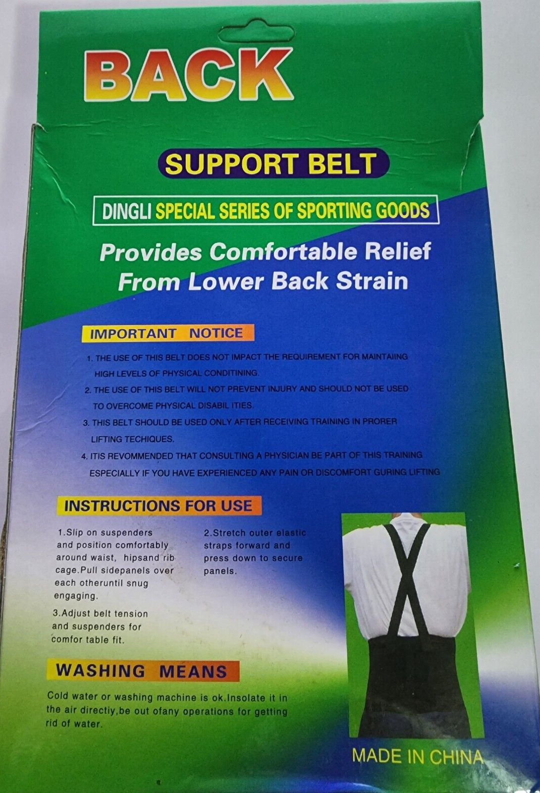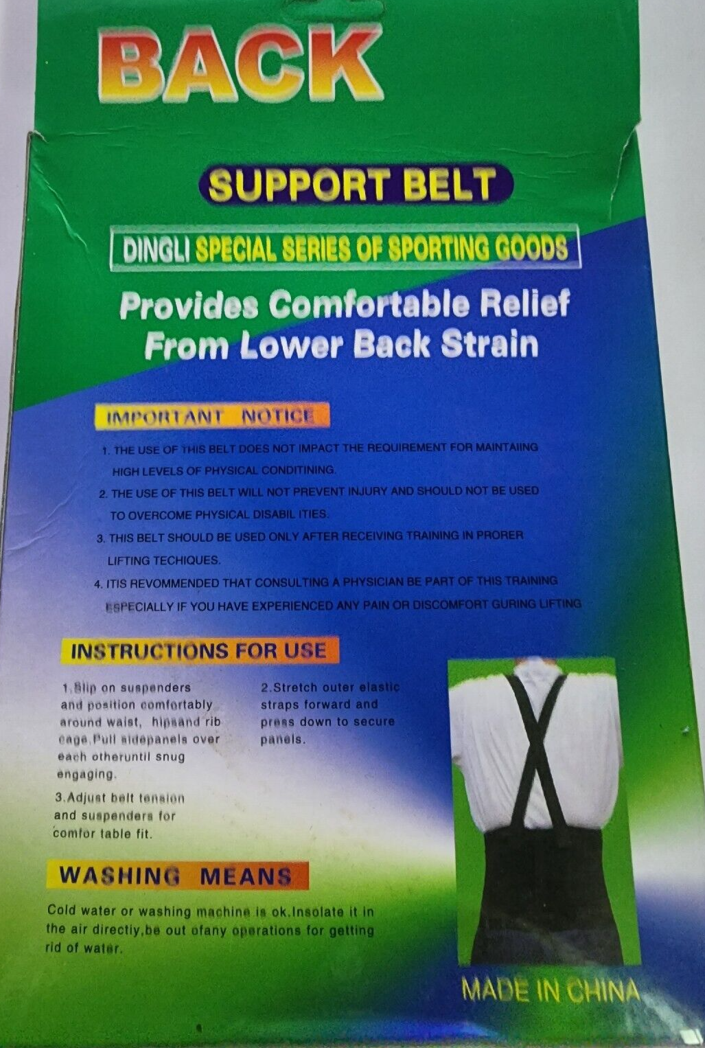 - Dingli Sporting Goods Back Support Belt Color Black Size XL / XXL.