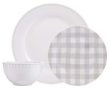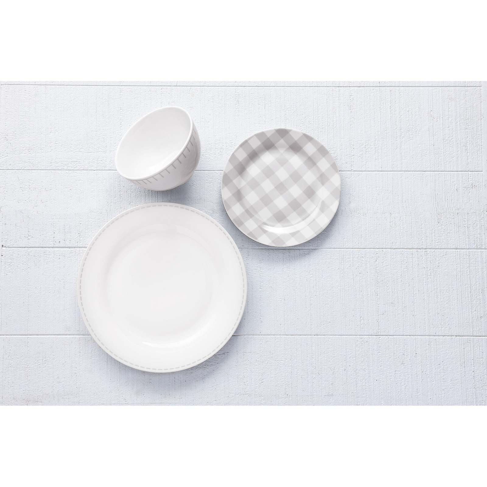 - Dinnerware Set 12 Piece Rustic Cottage Grey White Service for 4