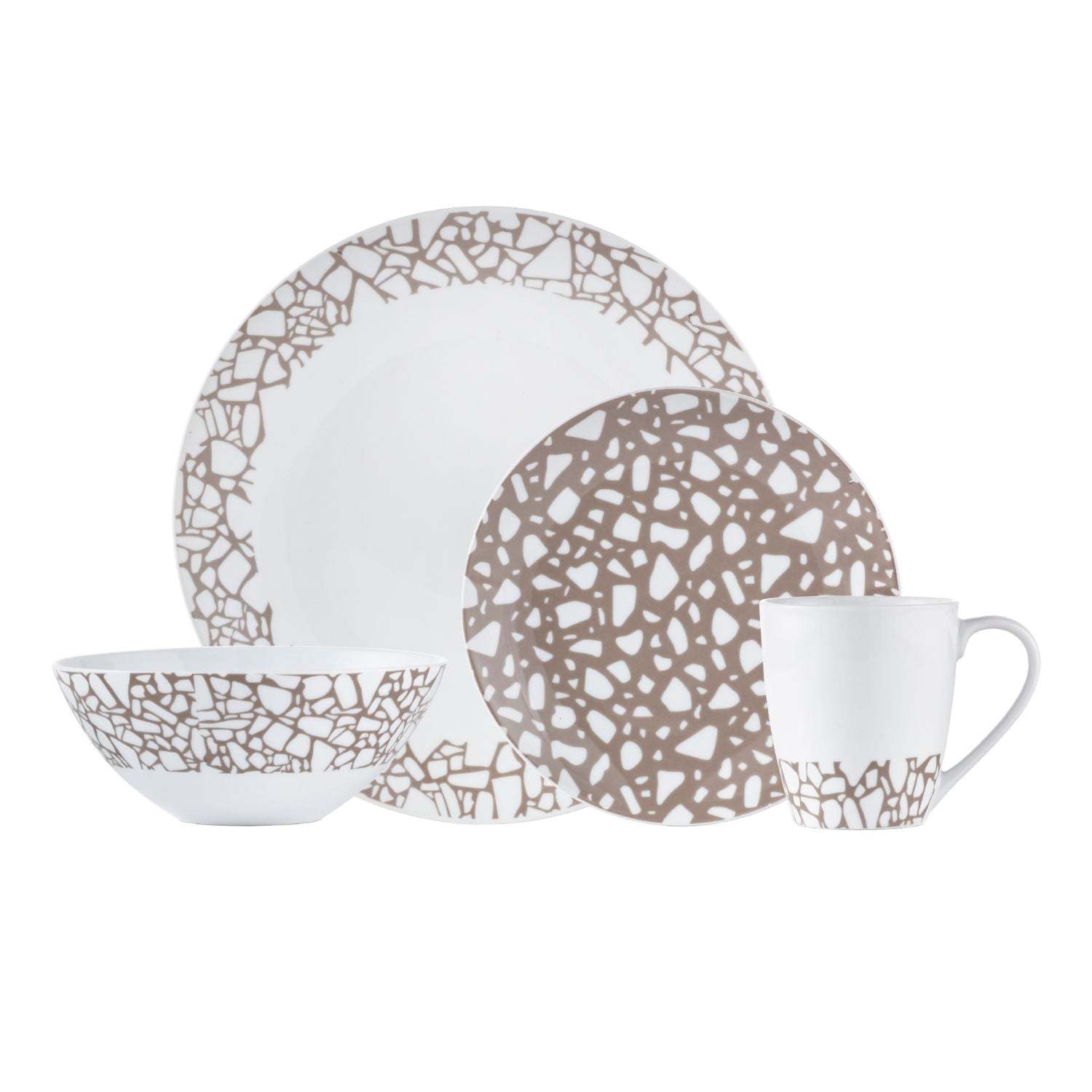 - Dinnerware Set 16 Piece Terrazzo Beige Service for 4