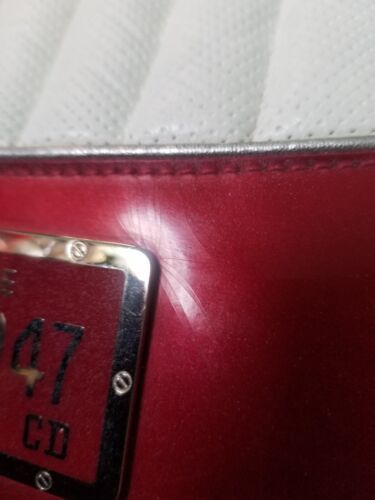 This shows expected wear on the leather and trim. Some crazing on the patent which is typical of this handbag collection.