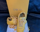 The Dior B27 LT Calf Galaxy Low Top World Tour Yellow Box sneakers in EU 42 US 9 are a stylish and athletic option for men. Featuring a low top design with a lace-up closure, these sneakers are made of leather with a vibrant yellow color. The Dior branding and unique design make them a trendy choice for casual occasions, embodying the brand's luxury and fashion sense. Made in Italy, they are a part of the Dior B27 line and showcase a world tour theme in their design, making them a statement piece for any sneaker collection.