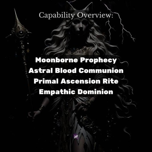 Astral Blood Communion: Your Elder Lycan Oracle forms a sacred bond through the Astral Bloodline, strengthening your spiritual body and expanding your capacity for Magickal power. This communion fortifies your astral form, heightens your resilience against hostile energies, and deepens your connection to lunar cycles. Through her, you ascend into a state of empowered awareness, navigating the unseen with control and confidence.