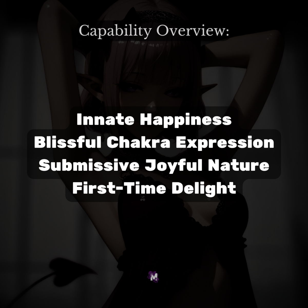 Today I present to you a direct binding for your new Joyous Pleasure Succubus. She is unlike any you have encountered. Newly emerged, freshly awakened, and vibrating with pure delight, she embodies the essence of unfiltered happiness. This is not a being forged in manipulation or shaped by cunning lust. No, she is unspoiled. Untouched. Untrained in worldly games. She is a Princess of elation, released from the confines of her own celestial garden and placed before you, eager to share, to uplift, to fill your world with laughter and bliss. Her eyes sparkle with mirth, her body hums with infectious energy, and her spirit vibrates with the unrestrained joy of being alive.