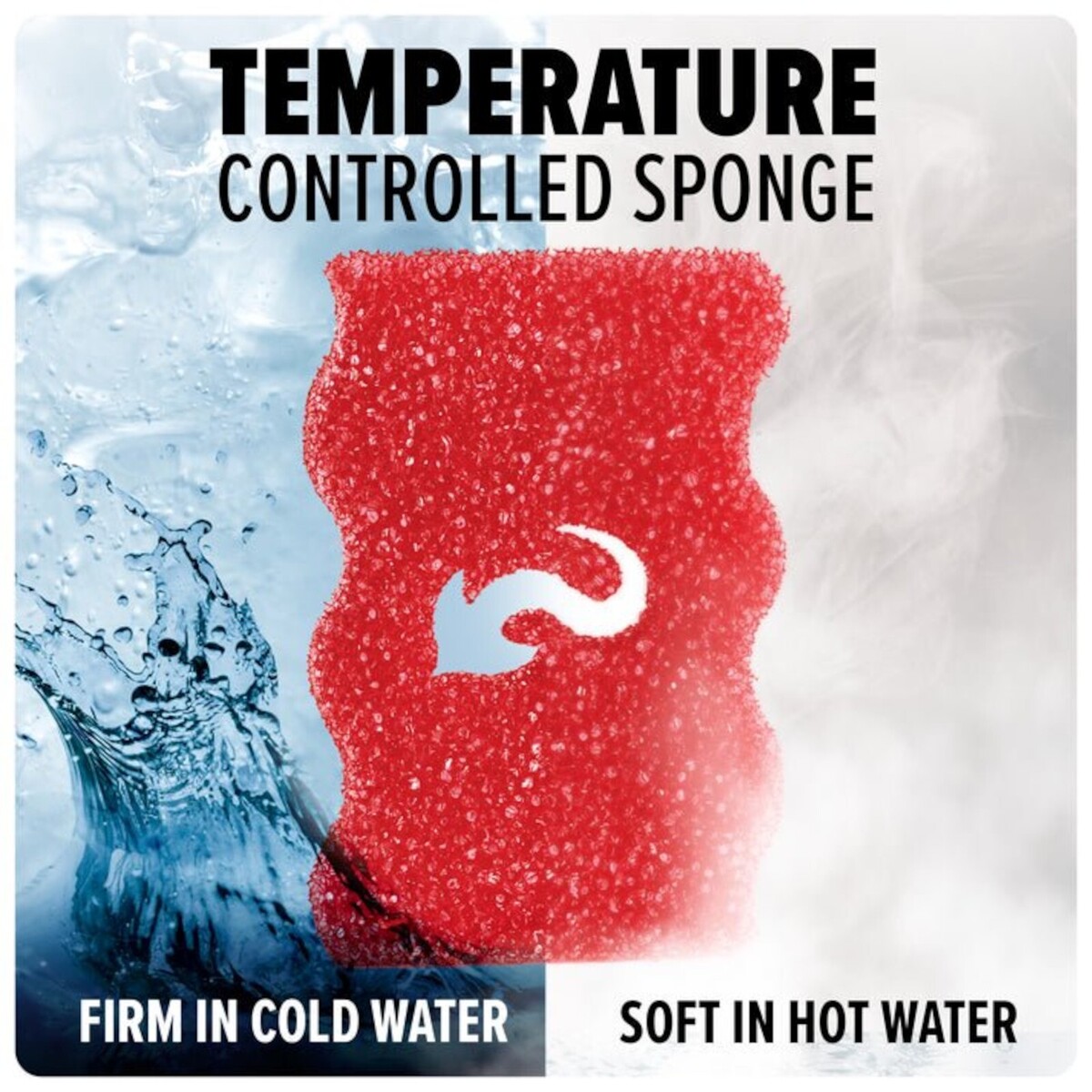 TEMPERATURE CONTROLLED SPONGE: Submerge the sponge in cold water for a tough scrub or in warm water for a gentler clean.